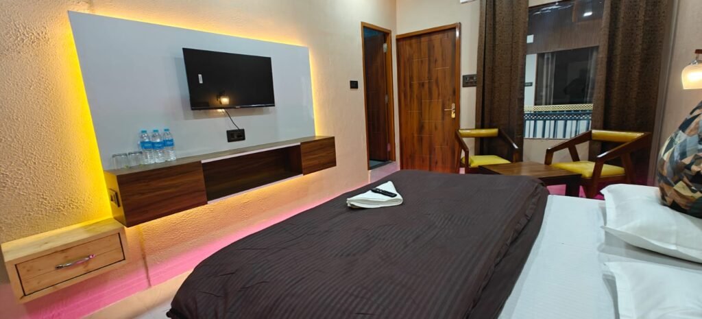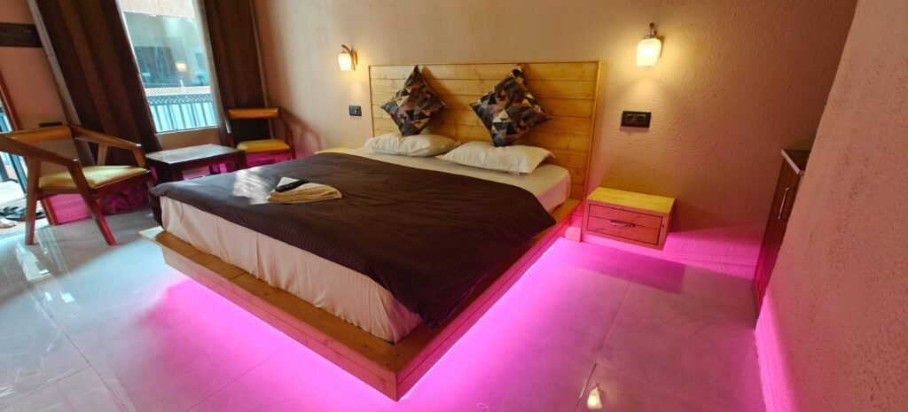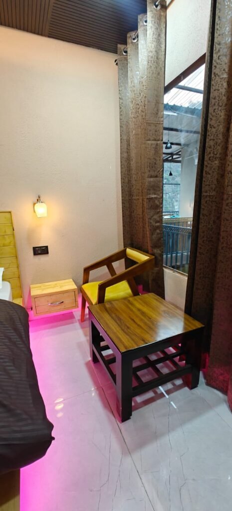 Double bed with attached washroom, sofa, chair, table, water gyser, LED TV and Air conditioner. Even you can enjoy free unlimited wifi